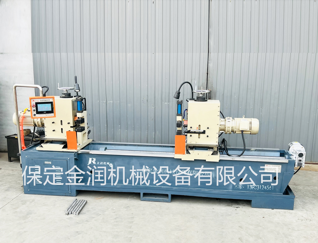 金潤銑扁/銑槽機采用PLC控制技術(shù),是一款托輥軸自動生產(chǎn)設(shè)備,具有加工速度快,精度高,刀具省,勞動強度低等特點,已在多個行業(yè)廣泛應(yīng)用。 本機為高配機型帶有儲料架和自動進料/卸料裝置(需單獨采購),設(shè)備啟動后可以一次性加工完儲料臺上放置的所有軸料,明顯減少了用工數(shù)量和提升了生產(chǎn)效率,同時由于設(shè)備運轉(zhuǎn)時操作工的雙手離開了工作區(qū)域,非常有利于安全生產(chǎn),實現(xiàn)無人值守。(新型托輥軸扁槽加工設(shè)備,基座、滑臺、主軸座全部采用一次鑄造成型,具有良好的床身穩(wěn)定性和吸能減震作用。)